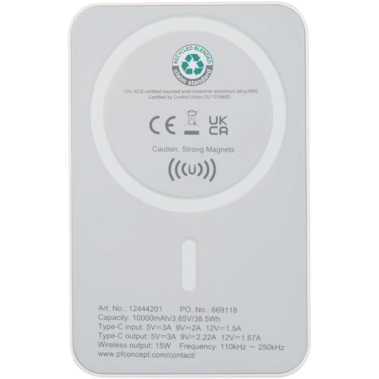 Acrab magnetyczny bezprzewodowy powerbank o pojemności 10 000 mAh i mocy 15 W z technologią 20 W PD — wykonany z tworzyw sztucznych pochodzących z rec
