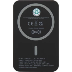 Acrab magnetyczny bezprzewodowy powerbank o pojemności 10 000 mAh i mocy 15 W z technologią 20 W PD — wykonany z tworzyw sztucznych pochodzących z rec