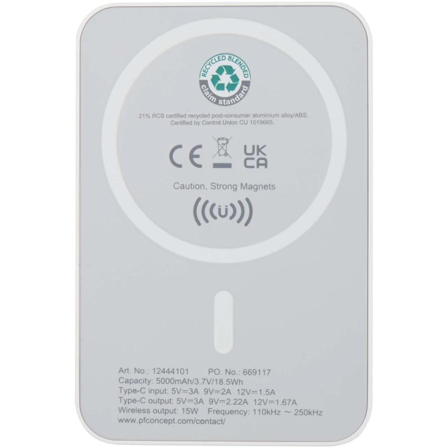 Acrab magnetyczny bezprzewodowy powerbank o pojemności 5000 mAh i mocy 15 W z technologią PD 20 W — wykonany z tworzyw sztycznych pochodzących z recyk