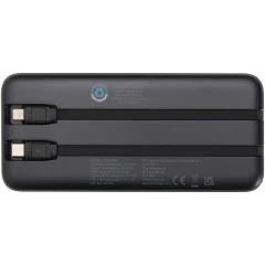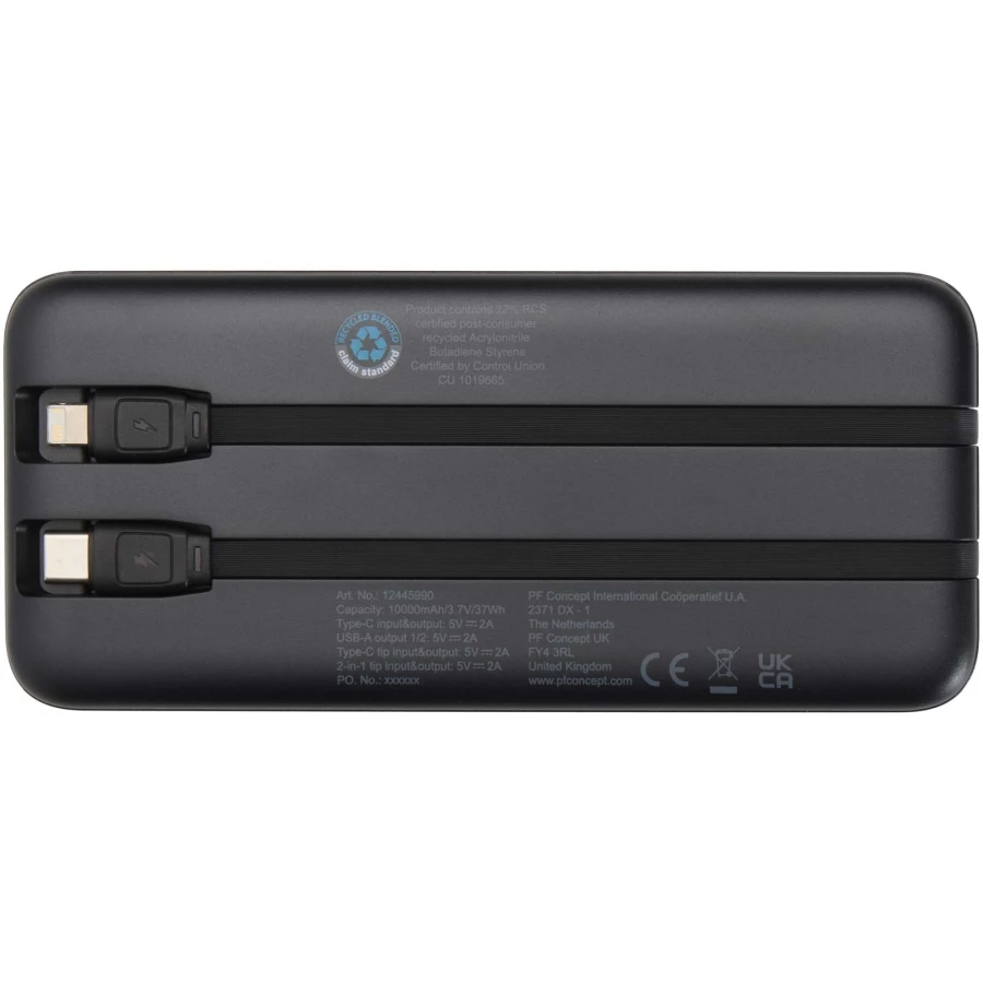 Adhil powerbank o pojemności 10.000 mAh i mocy 10 W z tworzyw sztucznych pochodzących z recyklilngu z 2 wbudowanymi kablami (12445990)