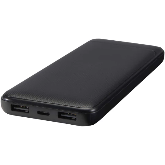 Powerbank Adhil o pojemności 10 000 mAh wykonany z tworzyw sztucznych pochodzących z recyklingu łączy styl i wygodę w kompaktowej konstrukcji. Urządzenie jest wyposażone w dwa wbudowane kable: USB-C i Lightning/microUSB, a także dwa wyjścia USB-A i złącze wejściowo-wyjściowe USB-C, co umożliwia wszechstronne ładowanie. Wskaźnik LED pokazuje stan ładowania, dzięki czemu jest to niezawodne źródło zasilania w podróży.