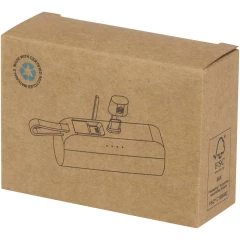 Powerbank Alnair to kompaktowe i praktyczne rozwiązanie do ładowania wykonane z tworzyw sztucznych pochodzących z recyklingu. Urządzenie jest wyposażone w stałe złącze dokujące typu C, wbudowaną składaną podstawkę pod telefon i zintegrowany kabel 2 w 1 ze złączem Lightning/micro-USB. Dzięki złączom wejściowo-wyjściowym typu C zapewnia dodatkową funkcjonalność i idealnie nadaje się do ładowania i obsługi telefonu, gdziekolwiek jesteś.