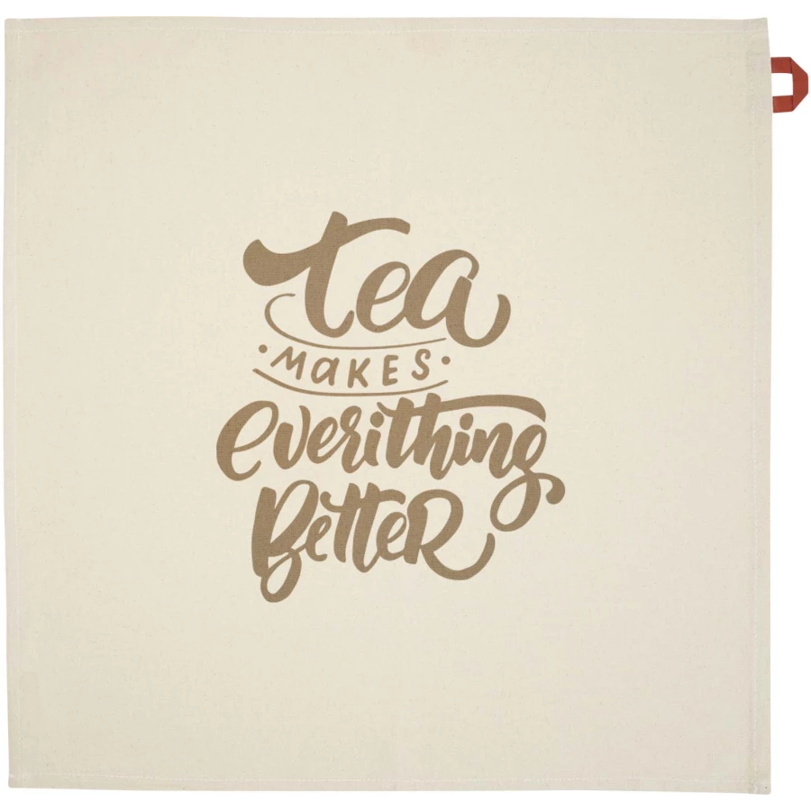 Ręcznik kuchenny wykonany w 100% z bawełny pochodzącej z recyklingu o gramaturze 200 g/m² z certyfikatem GRS, z charakterystyczną kontrastową pętelką. Wymiary ręcznika: 50 x 50 cm.