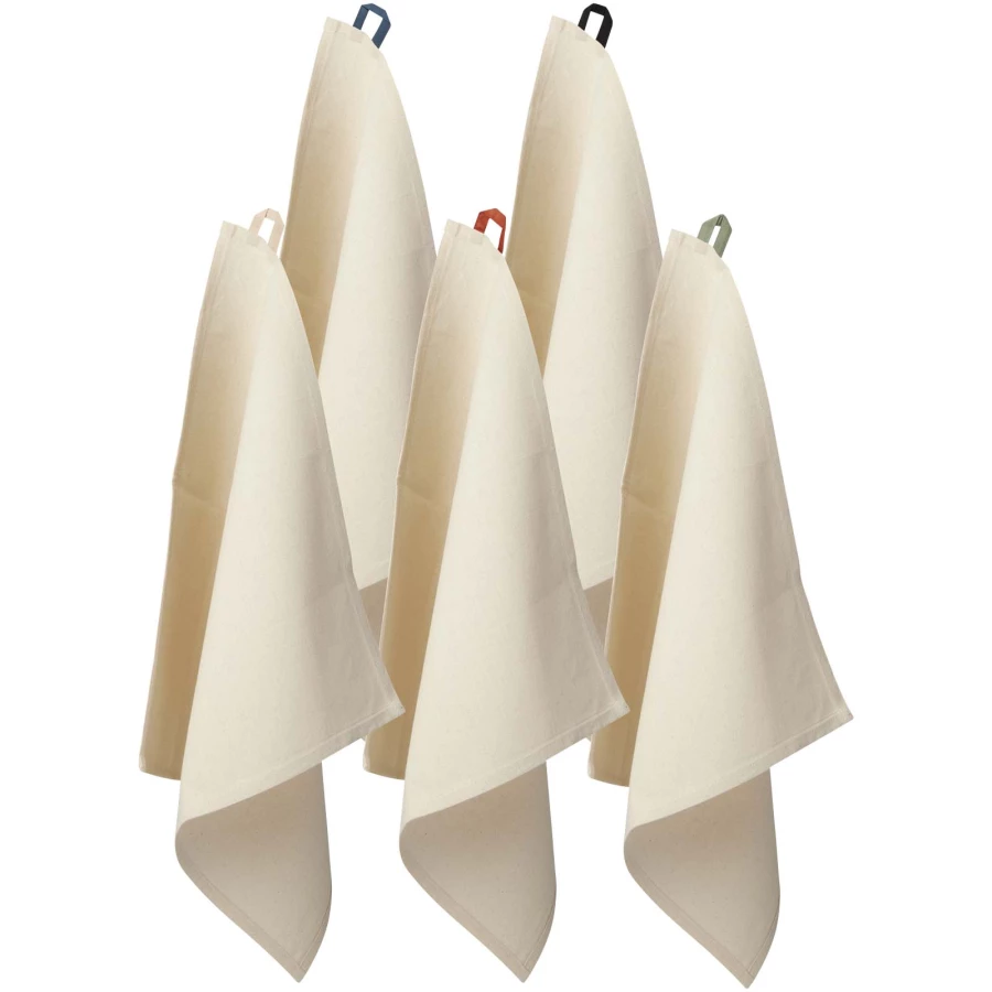 Ręcznik kuchenny wykonany w 100% z bawełny pochodzącej z recyklingu o gramaturze 200 g/m² z certyfikatem GRS, z charakterystyczną kontrastową pętelką. Wymiary ręcznika: 50 x 50 cm.