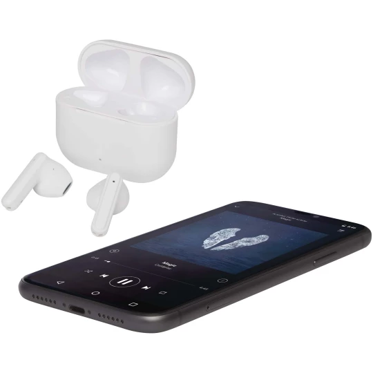 Altais zestaw słuchawkowy stereo TWS Bluetooth®, wykonany z tworzyw sztucznych pochodzących z recyklingu, łączy w sobie komfort i wygodę, a wszystko to w kompaktowym etui ładującym. Dzięki technologii Bluetooth® 6.0 zapewnia stabilną łączność, do 4 godzin rozmów lub odtwarzania muzyki oraz szybkie ładowanie w zaledwie 1–1,5 godziny. W zestawie znajduje się kabel ładujący USB-A do Type-C o długości 30 cm.