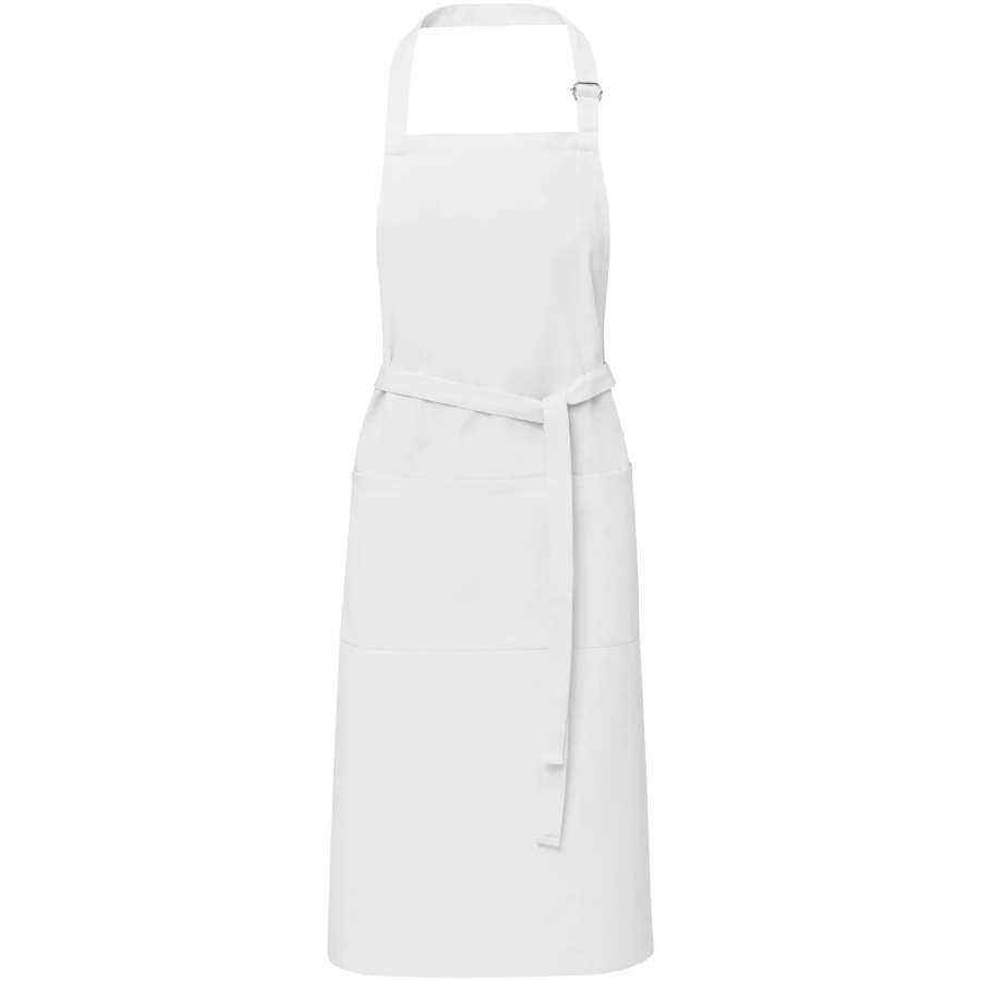 Fartuch Andrea ułatwia chronienie pięknych ubrań przed zabrudzeniem w trakcie gotowania. Fartuch jest wykonany z tkaniny twill o gramaturze 240 g/m² (65% poliester i 35% bawełna), dzięki czemu jest gruby i wytrzymały, a jednocześnie miękki i wygodny w noszeniu. Dwie przednie kieszenie zapewniają szybki i łatwy sposób przechowywania niezbędnych przyborów kuchennych. Fartuch jest regulowany za pomocą klamry wokół szyi i wiązania z tyłu, dzięki czemu ma uniwersalny rozmiar. Istnieje wiele opcji wykonania dużych nadruków w celu maksymalnej ekspozycji logo.