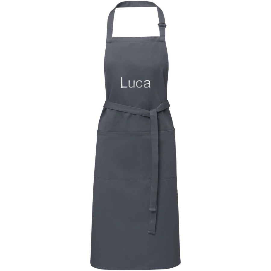 Fartuch Andrea ułatwia chronienie pięknych ubrań przed zabrudzeniem w trakcie gotowania. Fartuch jest wykonany z tkaniny twill o gramaturze 240 g/m² (65% poliester i 35% bawełna), dzięki czemu jest gruby i wytrzymały, a jednocześnie miękki i wygodny w noszeniu. Dwie przednie kieszenie zapewniają szybki i łatwy sposób przechowywania niezbędnych przyborów kuchennych. Fartuch jest regulowany za pomocą klamry wokół szyi i wiązania z tyłu, dzięki czemu ma uniwersalny rozmiar. Istnieje wiele opcji wykonania dużych nadruków w celu maksymalnej ekspozycji logo.