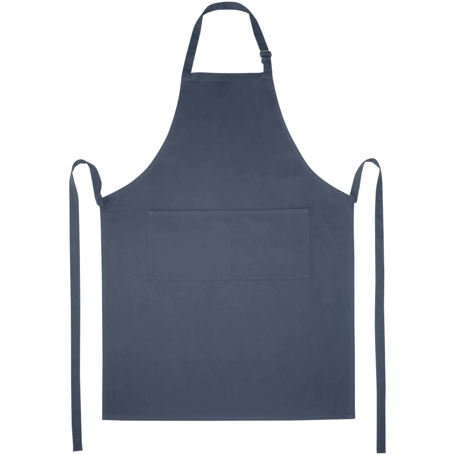 Fartuch Andrea ułatwia chronienie pięknych ubrań przed zabrudzeniem w trakcie gotowania. Fartuch jest wykonany z tkaniny twill o gramaturze 240 g/m² (65% poliester i 35% bawełna), dzięki czemu jest gruby i wytrzymały, a jednocześnie miękki i wygodny w noszeniu. Dwie przednie kieszenie zapewniają szybki i łatwy sposób przechowywania niezbędnych przyborów kuchennych. Fartuch jest regulowany za pomocą klamry wokół szyi i wiązania z tyłu, dzięki czemu ma uniwersalny rozmiar. Istnieje wiele opcji wykonania dużych nadruków w celu maksymalnej ekspozycji logo.