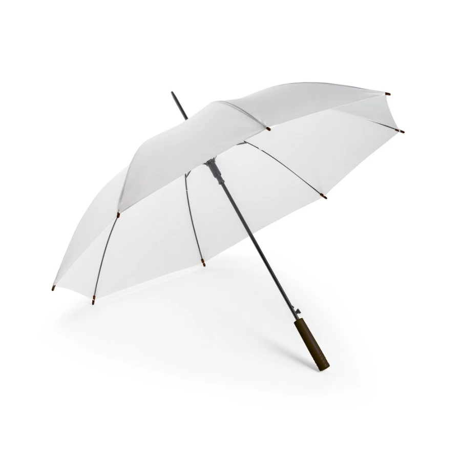 Parasol poliestru pochodzącego (100% rPET) pongee z automatycznym otwieraniem, metalowym stelażem oraz drewnianą rączką. ø1050 x 850 mm