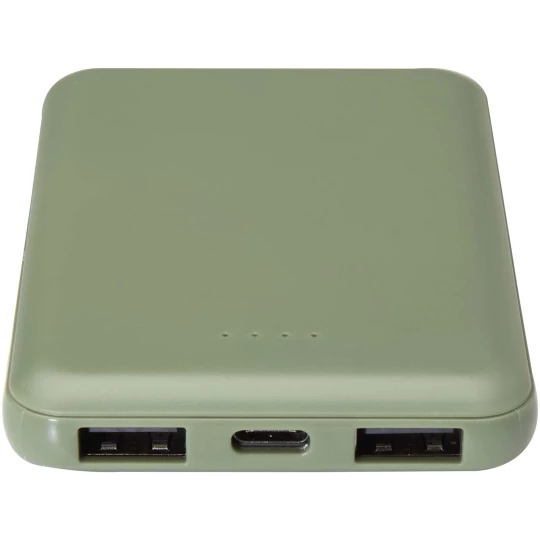 Power bank o smukłej i eleganckiej konstrukcji z portem wejścia/wyjścia typu C i 2x portami USB-A, dzięki czemu można ładować 3 urządzenia jednocześnie. Powerbank wyposażony jest w akumulator litowo-polimerowy o pojemności 5000 mAh, który zapewnia całkowitą moc wyjściową wynoszącą maks. 10 W. Ten powerbank jest wykonany w 23% z tworzyw sztucznych pochodzących z recyklingu z certyfikatem RCS. Dostarczany z kablem ładującym TPE typu C na USB-A.