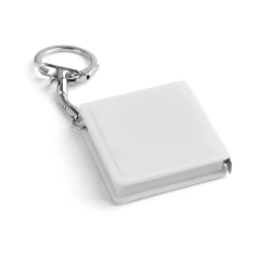 Brelok z taśmą mierniczą o długości 1 m. Karabińczyk: 24 x 25 mm | Produkt: 40 x 40 x 10 mm | Łańcuch: 38 mm | Razem: 110 x 53 x 10 mm