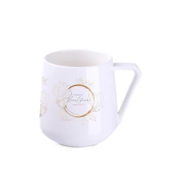 Porcelanowy kubek o ciekawym kształcie i awangardowym uchwycie. W oryginalny sposób podkreśli wyjątkowość promowanej marki.