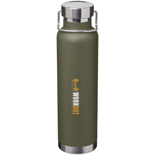 Butelka z podwójnymi ściankami ze stali nierdzewnej z certyfikatem RCS i próżniową izolacją miedzianą. Posiada zakręcaną pokrywkę ze stali nierdzewnej z recyklingu i trwałą pętlę na dłoń ze stali nierdzewnej. Szeroki otwór dla wygodnego napełniania i opróżniania. Pojemność: 650 ml. Pakowana w pudełko upominkowe.