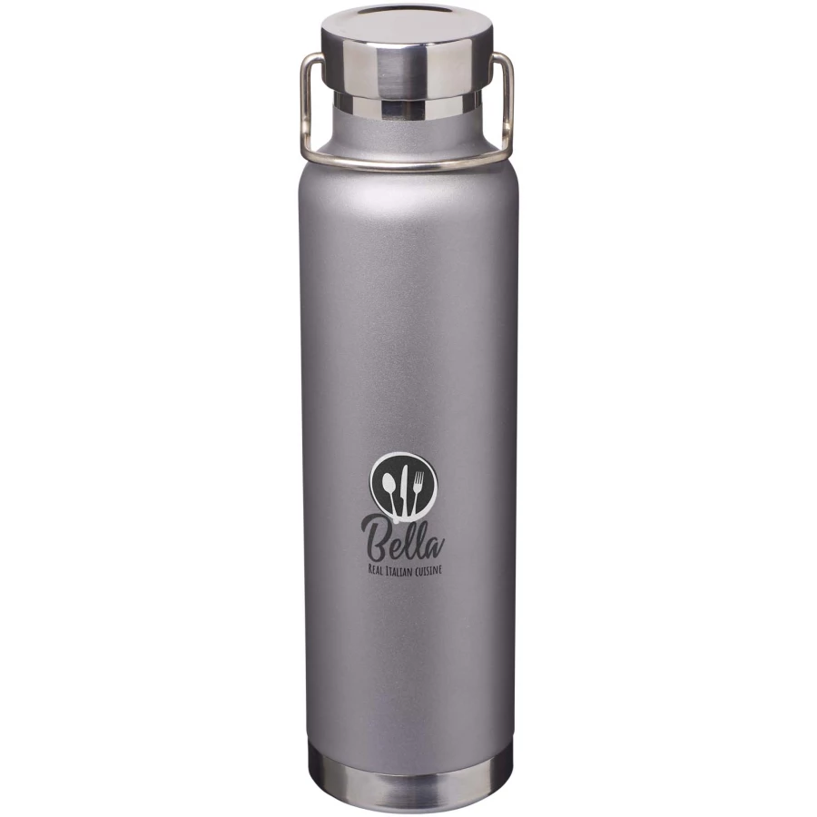 Butelka z podwójnymi ściankami ze stali nierdzewnej z certyfikatem RCS i próżniową izolacją miedzianą. Posiada zakręcaną pokrywkę ze stali nierdzewnej z recyklingu i trwałą pętlę na dłoń ze stali nierdzewnej. Szeroki otwór dla wygodnego napełniania i opróżniania. Pojemność: 650 ml. Pakowana w pudełko upominkowe.
