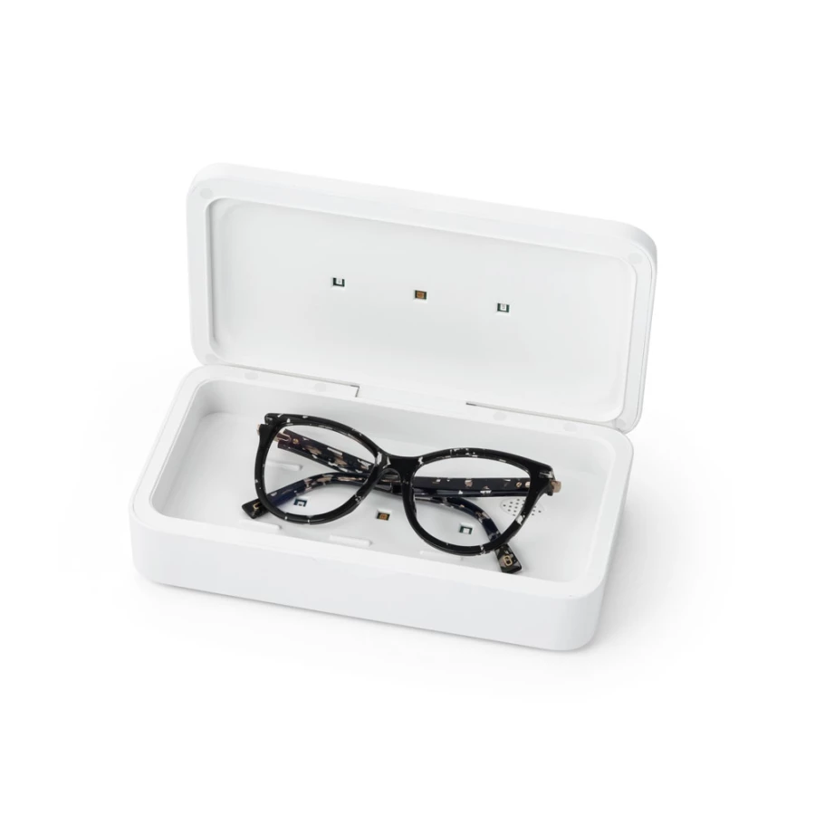 Etui sterylizujące wykonane z ABS i PC z połączeniem promieniowania UVC i UVA, które pozwala na eliminację szerokiego spektrum bakterii. Etui posiada wewnątrz 2 diody UV o łącznej mocy 2W i zostało specjalnie zaprojektowane do usuwania bakterii z przedmiotów codziennego użytku takich jak: klucze, telefony, smartfony, maseczki, okulary, piloty, biżuteria i inne drobne przedmioty. Wydajność 70% tylko przy 1 cyklu 5 minutowym i 99.9% przy dwóch cyklach 5 minutowych. Posiada czujnik bezpieczeństwa, który wyłącza lampy natychmiast po otwarciu obudowy. W górnej części pudełka znajduje się bezprzewodowa szybka ładowarka (10 W), z wejściem 5 V/3 A i portem ładowania USB typu C. Zawiera 1 metrowy kabel. Dostarczane w pudełku prezentowym. 210 x 120 x 55 mm | Wewnątrz: 190 x 95 x 20 mm | Pudełko: 240 x 130 x 71 mm