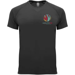 Koszulka techniczna z krótkim, raglanowym rękawem. Okrągły dekolt wykończony krytymi szwami w tym samym odcieniu. Panele pod pachami. Szwy na rękawach i pachach w tym samym odcieniu. Tkanina CONTROL-DRY. Usuwalna metka. Tkanina techniczna.