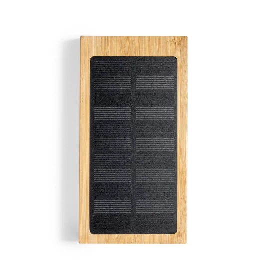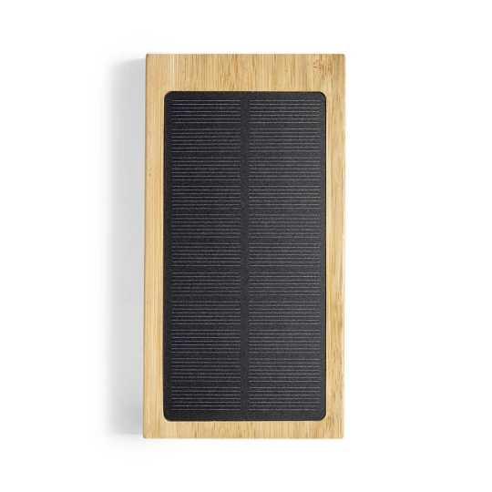 Bambusowy bezprzewodowy power bank 10000 mAh, ładowarka bezprzewodowa 5W, ładowarka słoneczna (V8335-16)