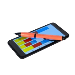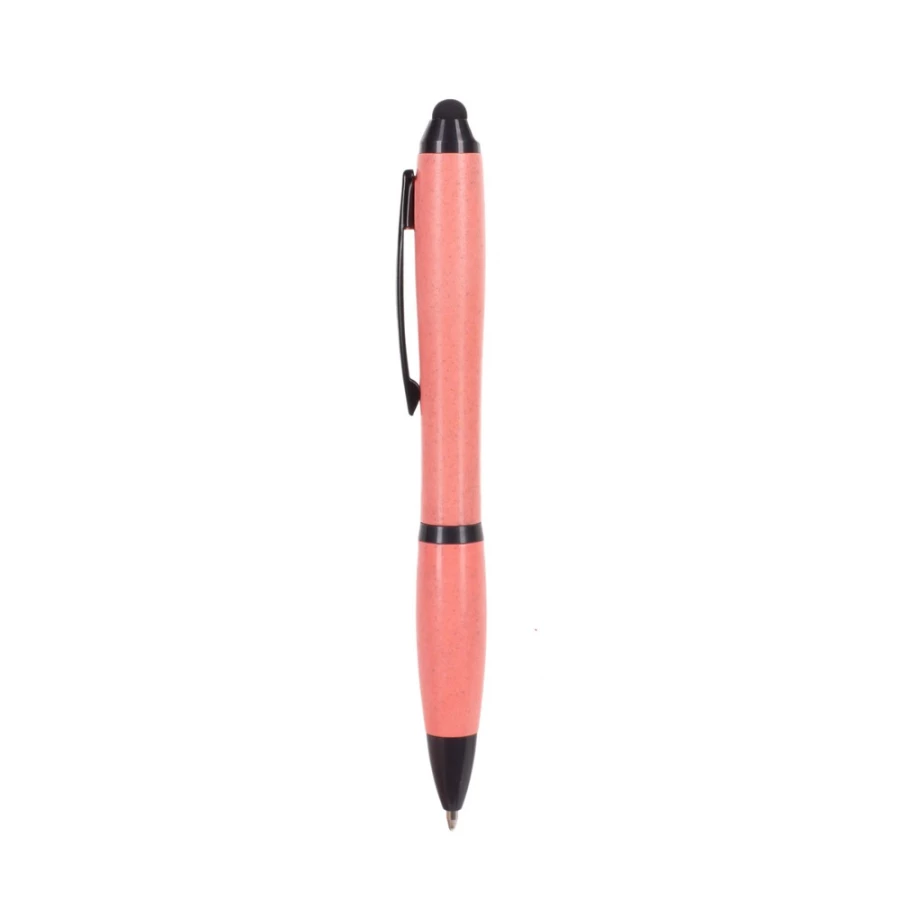 Długopis, touch pen, kolorowy trzon z włókna bambusowego, metalowy klip, czarne elementy