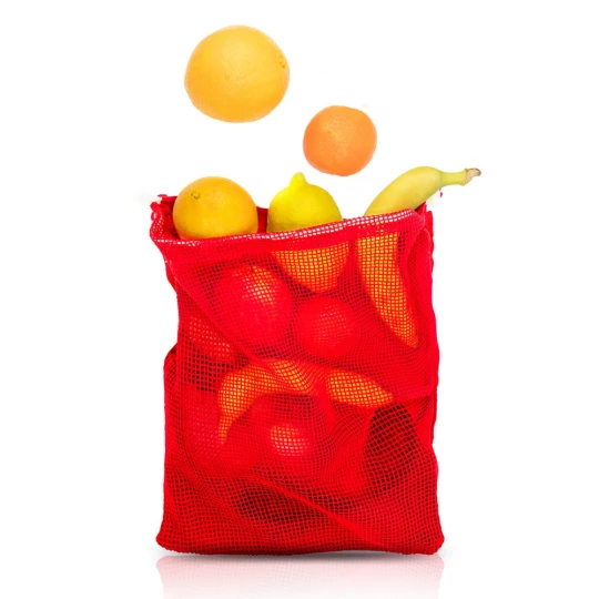 Bawełniany worek na owoce i warzywa, duży, przód wykonany z siatki, tył z jednolitego materiału