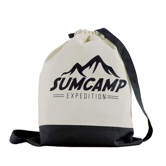 Dwukolorowy worek, posiada szerokie paski na ramię umożliwiające noszenie na plecach, pomieści drobne zakupy lub strój sportowy na siłownię, produkt wykonany z bawełny o gramaturze 140 g/m2
