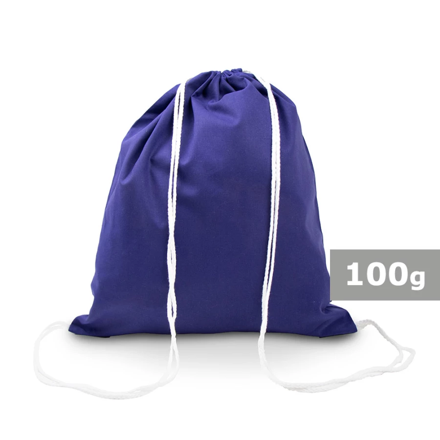 Worek ze sznurkiem umożliwiającym noszenie na plecach, pomieści drobne zakupy lub strój sportowy na siłownię, produkt wykonany z bawełny o gramaturze 100 g/m2