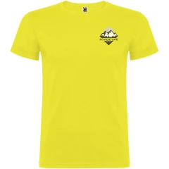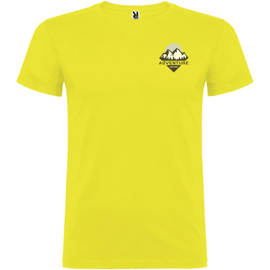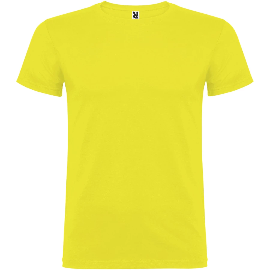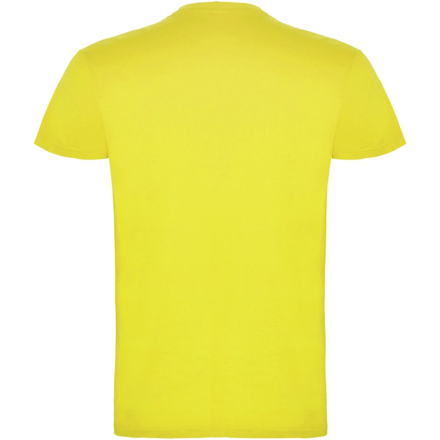 T-shirt z krótkim rękawem. Podwójna tkanina z dodatkiem elastanu przy kołnierzu. Wzmocnione, kryte szwy na karczku. Brak szwów bocznych w wersji dla dorosłych. Usuwalna metka.