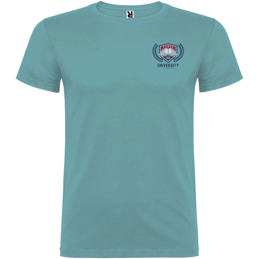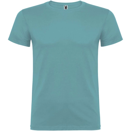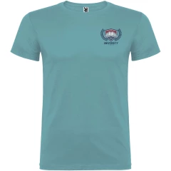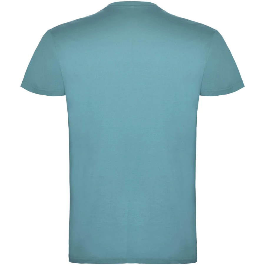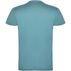 T-shirt z krótkim rękawem. Podwójna tkanina z dodatkiem elastanu przy kołnierzu. Wzmocnione, kryte szwy na karczku. Brak szwów bocznych w wersji dla dorosłych. Usuwalna metka.