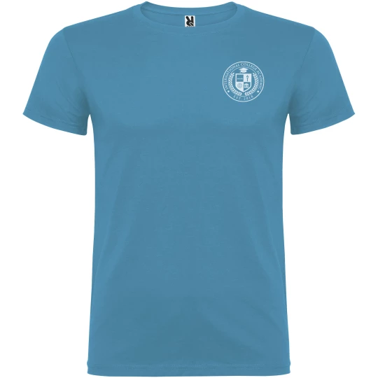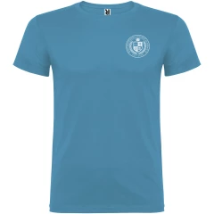 T-shirt z krótkim rękawem. Podwójna tkanina z dodatkiem elastanu przy kołnierzu. Wzmocnione, kryte szwy na karczku. Brak szwów bocznych w wersji dla dorosłych. Usuwalna metka.