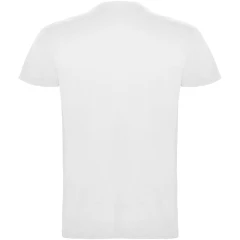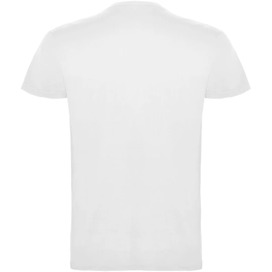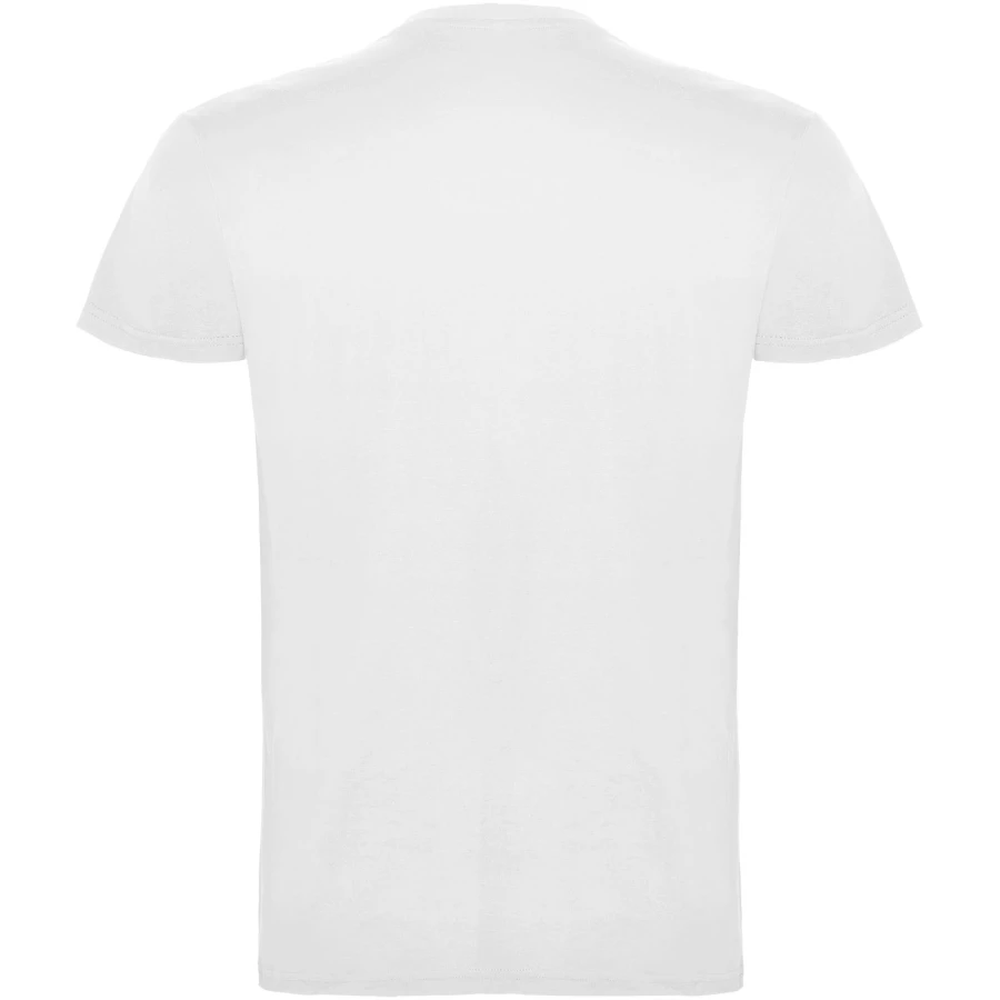T-shirt z krótkim rękawem. Podwójna tkanina z dodatkiem elastanu przy kołnierzu. Wzmocnione, kryte szwy na karczku. Brak szwów bocznych w wersji dla dorosłych. Usuwalna metka.