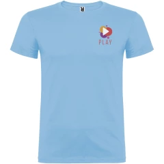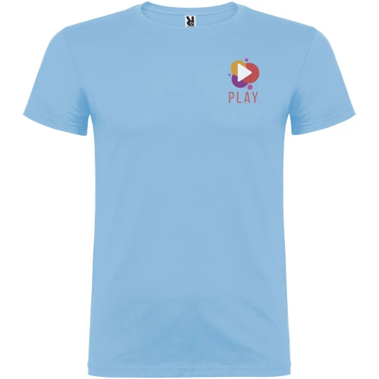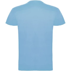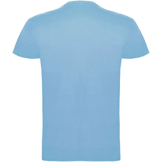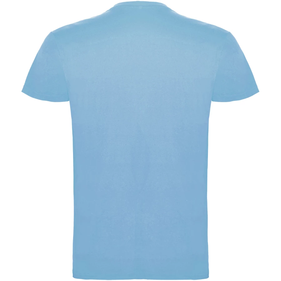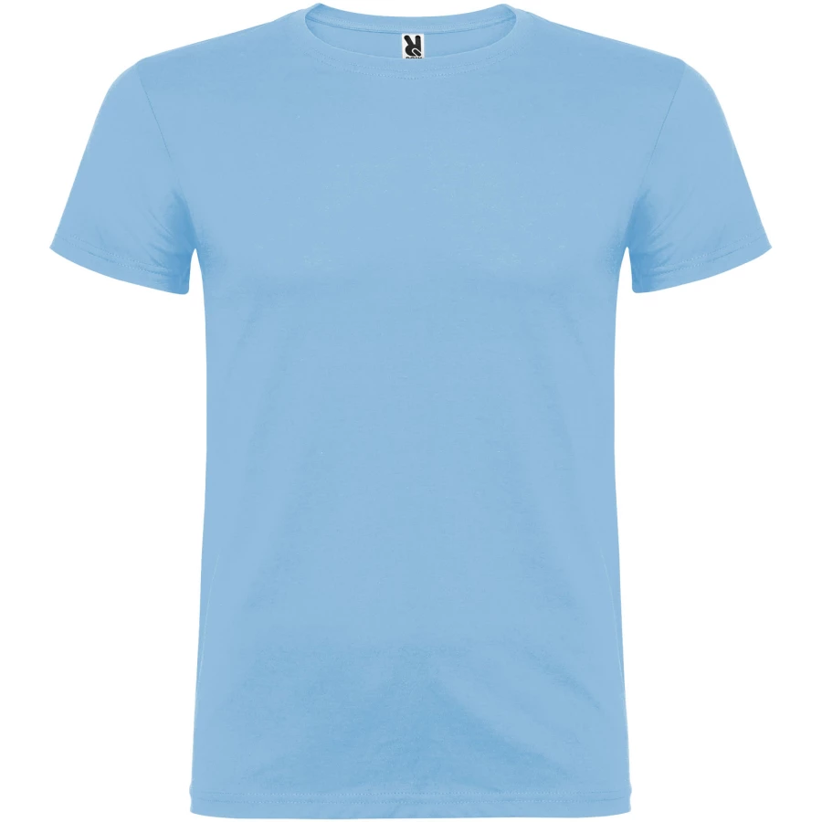 T-shirt z krótkim rękawem. Podwójna tkanina z dodatkiem elastanu przy kołnierzu. Wzmocnione, kryte szwy na karczku. Brak szwów bocznych w wersji dla dorosłych. Usuwalna metka.