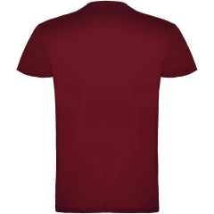T-shirt z krótkim rękawem. Podwójna tkanina z dodatkiem elastanu przy kołnierzu. Wzmocnione, kryte szwy na karczku. Brak szwów bocznych w wersji dla dorosłych. Usuwalna metka.