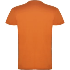 T-shirt z krótkim rękawem. Podwójna tkanina z dodatkiem elastanu przy kołnierzu. Wzmocnione, kryte szwy na karczku. Brak szwów bocznych w wersji dla dorosłych. Usuwalna metka.