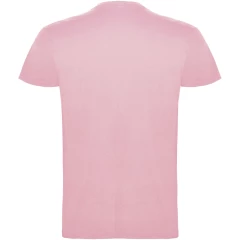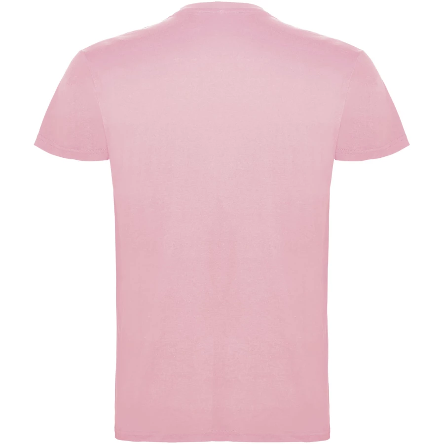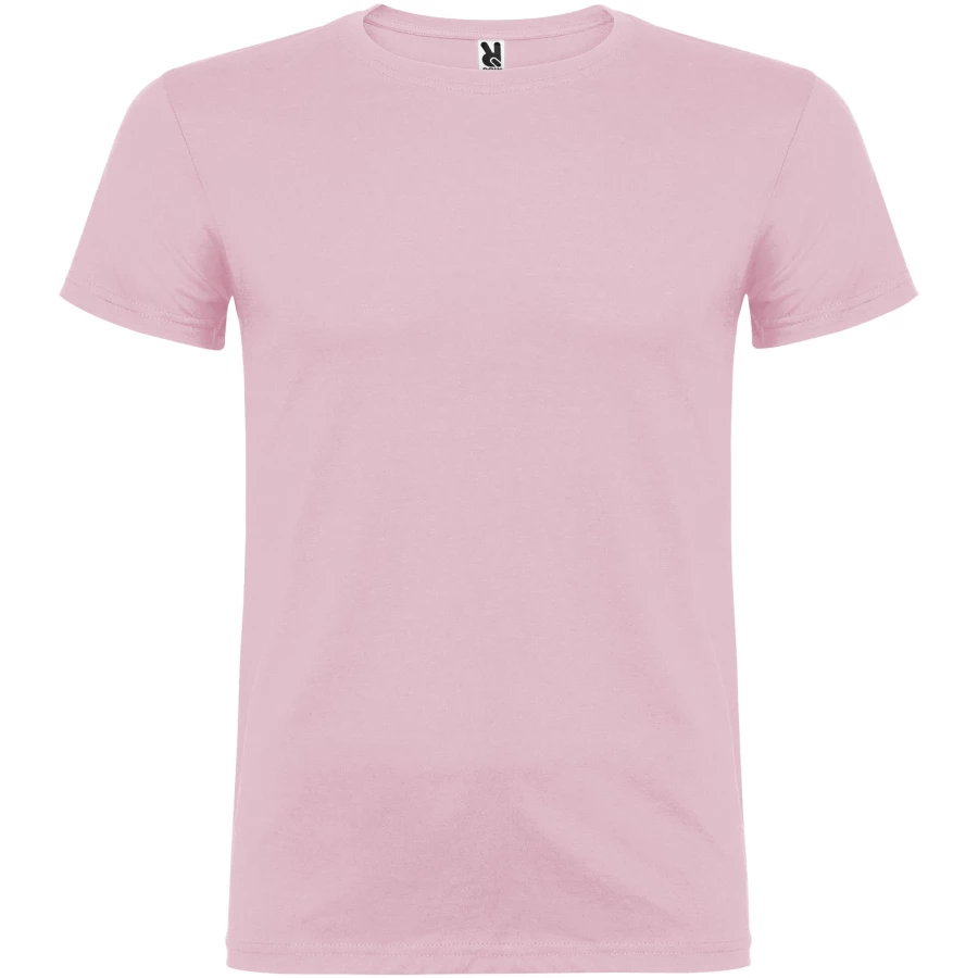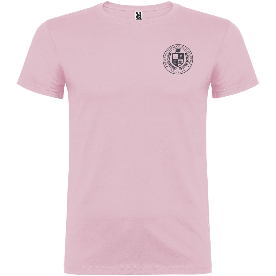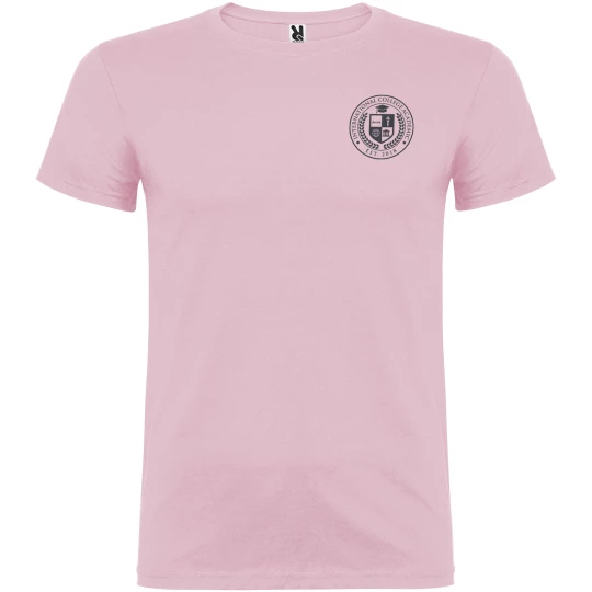 T-shirt z krótkim rękawem. Podwójna tkanina z dodatkiem elastanu przy kołnierzu. Wzmocnione, kryte szwy na karczku. Brak szwów bocznych w wersji dla dorosłych. Usuwalna metka.