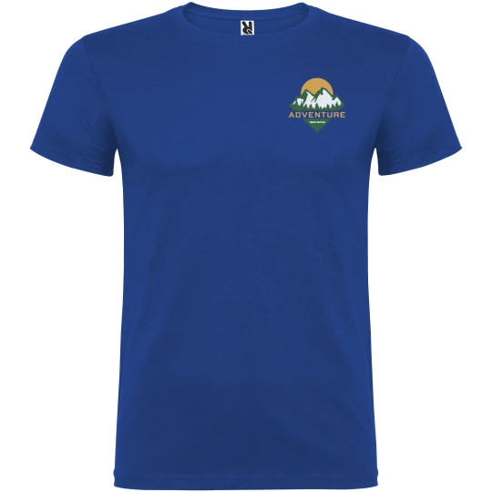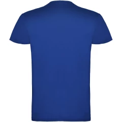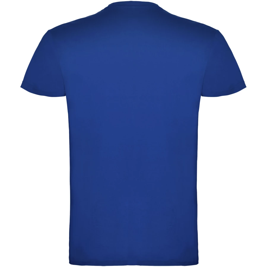 T-shirt z krótkim rękawem. Podwójna tkanina z dodatkiem elastanu przy kołnierzu. Wzmocnione, kryte szwy na karczku. Brak szwów bocznych w wersji dla dorosłych. Usuwalna metka.