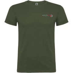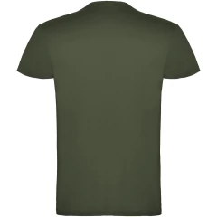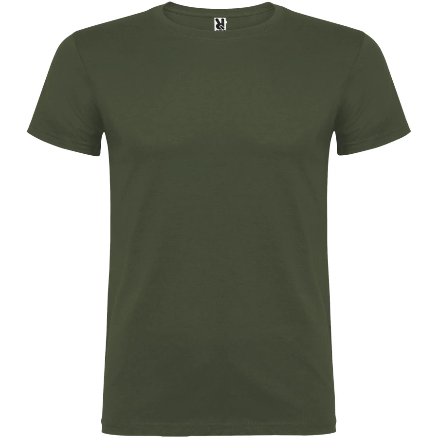 T-shirt z krótkim rękawem. Podwójna tkanina z dodatkiem elastanu przy kołnierzu. Wzmocnione, kryte szwy na karczku. Brak szwów bocznych w wersji dla dorosłych. Usuwalna metka.