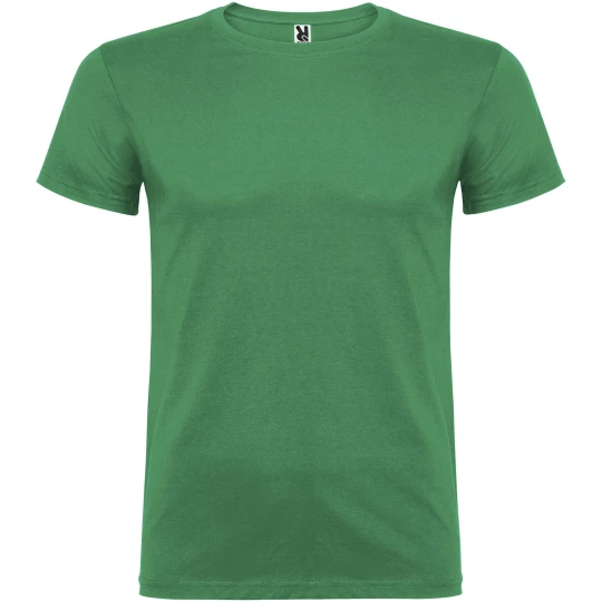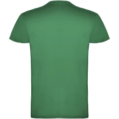 T-shirt z krótkim rękawem. Podwójna tkanina z dodatkiem elastanu przy kołnierzu. Wzmocnione, kryte szwy na karczku. Brak szwów bocznych w wersji dla dorosłych. Usuwalna metka.