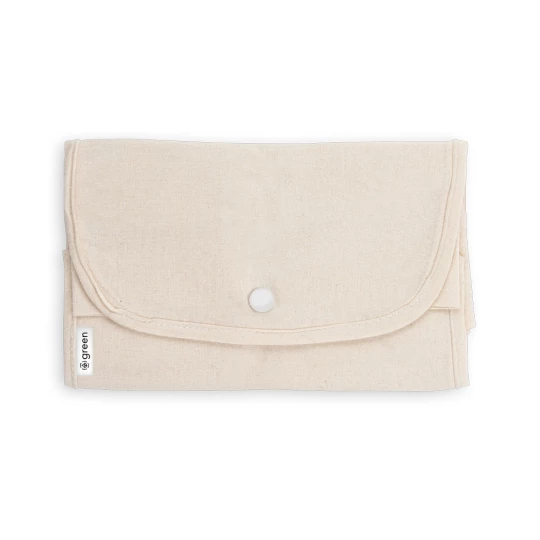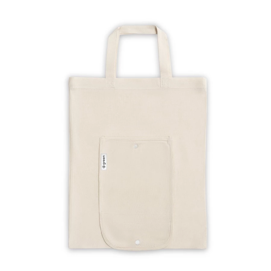 Składana torba z bawełny (50%), bawełny z recyklingu (30%) i poliestru (20% rPET) (140 g/m²) z uchwytami o długości 38 cm. Otwóry: 380 x 470 mm | Składany: 135 x 205 mm
