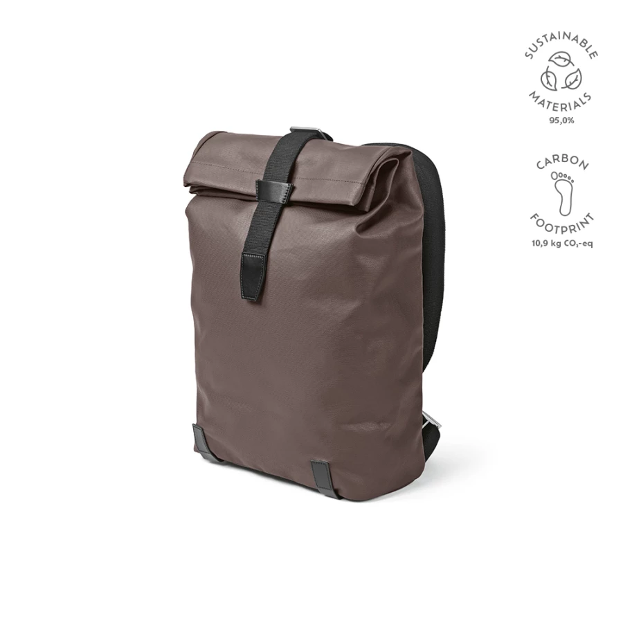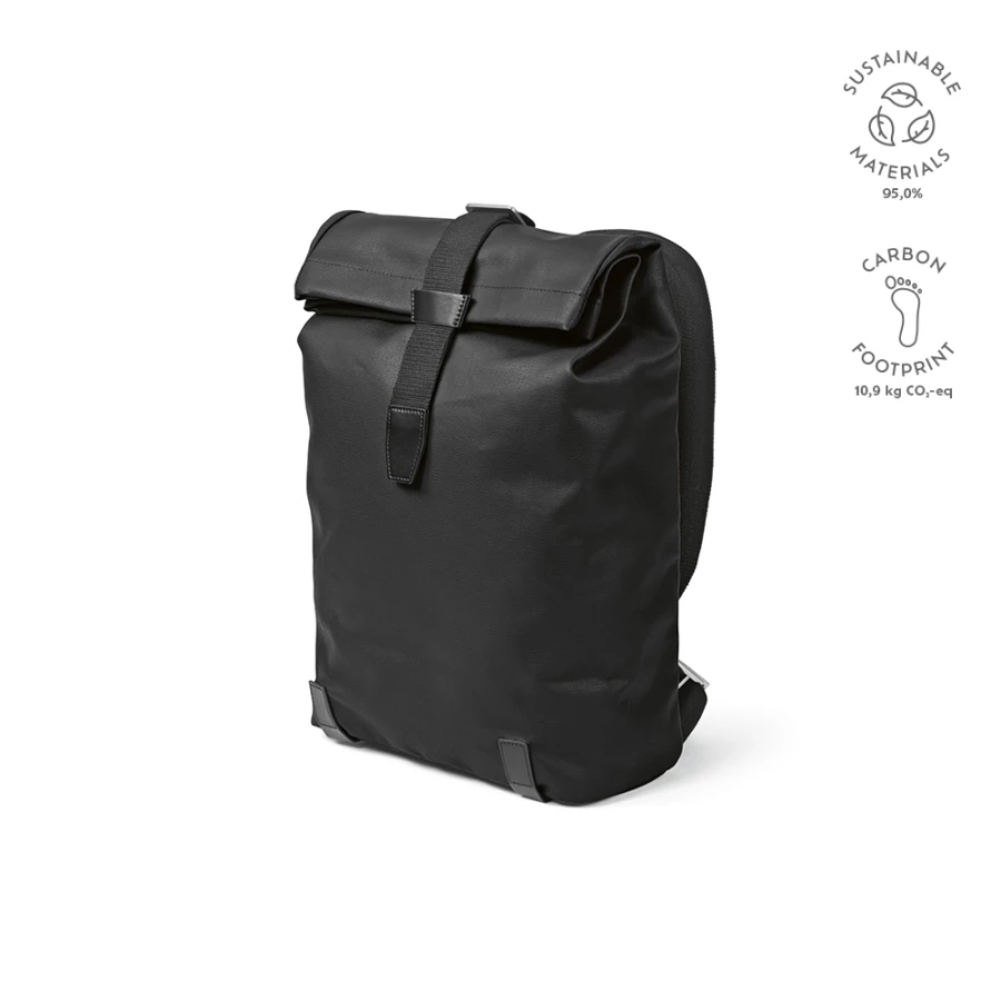 Ten wodoodporny plecak jest zgodny z zasadami zrównoważonego rozwoju: wykonany z bawełnianego płótna pochodzącego z recyklingu z powłoką PU (340 gr) i detalami z PU pochodzącymi z recyklingu. Z wyściełaną przegrodą na laptopa (17") i 2 wewnętrznymi kieszeniami. Dostarczany w indywidualnej bawełnianej torbie z recyklingu.