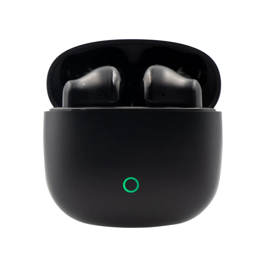 Słuchawki bezprzewodowe BT 5.4, douszne, etui z podświetlanym elementem w kształcie okręgu, bateria stacji ładującej 200 mAh, bateria słuchawek 40 mAh, funkcja odbierania połączeń, wbudowany mikrofon, czas pracy: ok. 3h, zasięg do 10 m, kabel USB-C w komplecie, produkt wykonany z ABS
