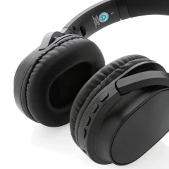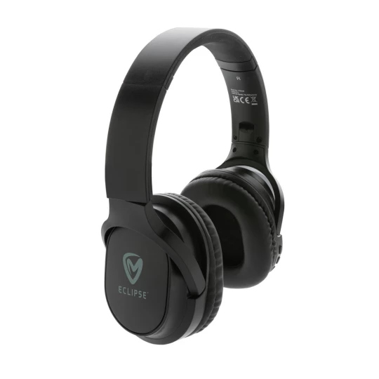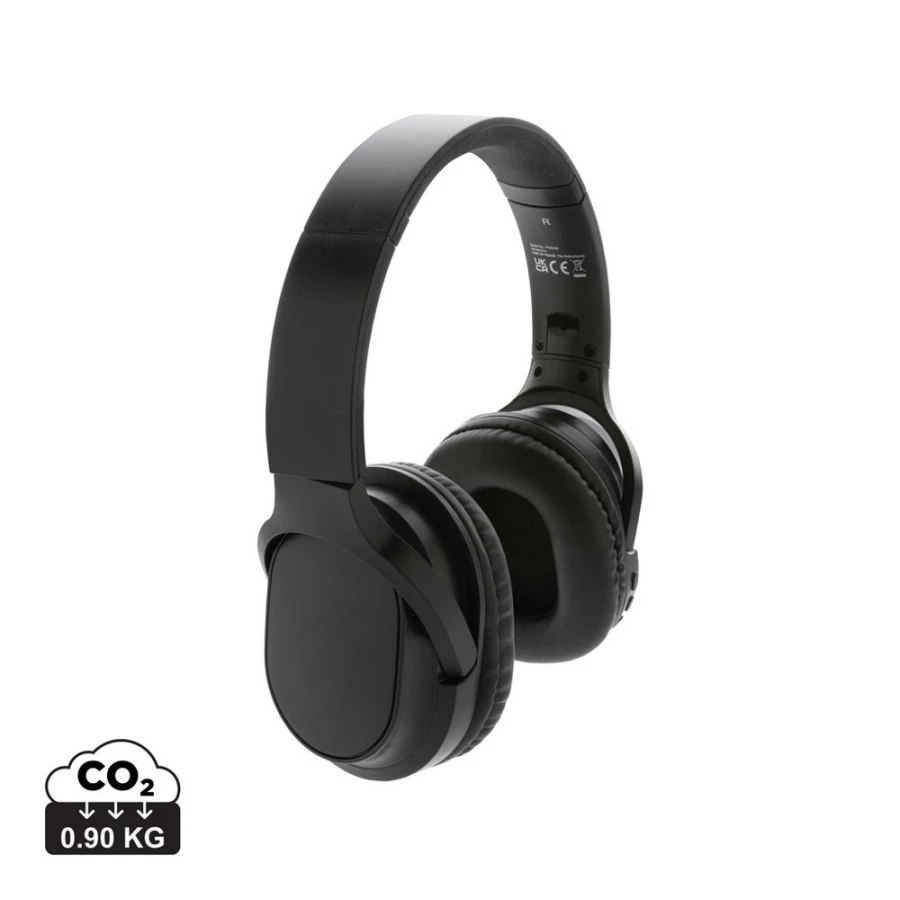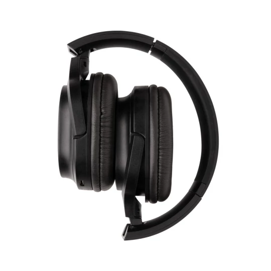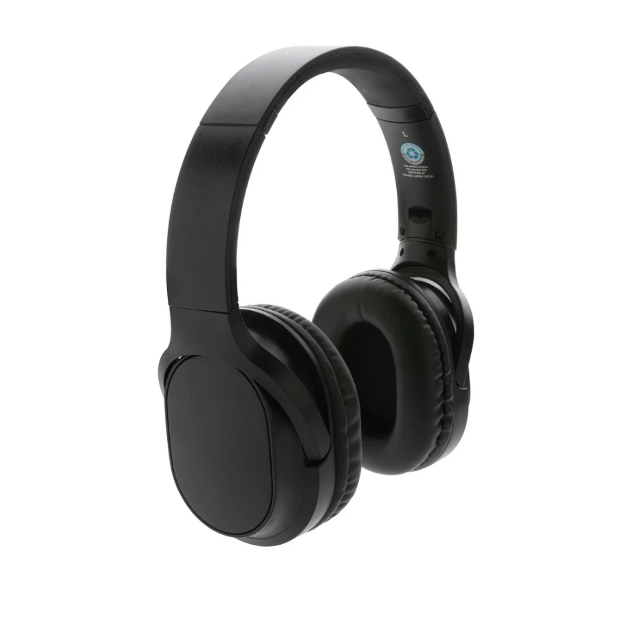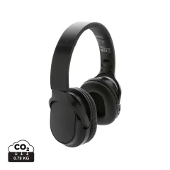 Nauszne słuchawki bezprzewodowe BT 5.1, składane, wykonane z materiałów z recyklingu z certyfikatem RCS, całkowita zawartość materiałów z recyklingu obliczona na podstawie wagi całkowitej przedmiotu: 71%, wbudowany mikrofon, funkcja odbierania połączeń, wbudowany akumulator o pojemności 200 mAh umożliwia odtwarzanie muzyki do 5 godzin, ponowne ładowanie w 2 godziny, zasięg do 10 m, kabel z TPE z recyklingu w komplecie, w kraftowym pudełku z certyfikatem FSC® mix, ślad węglowy produktu: 0,9 kg CO2