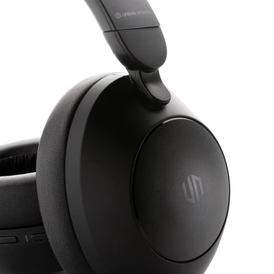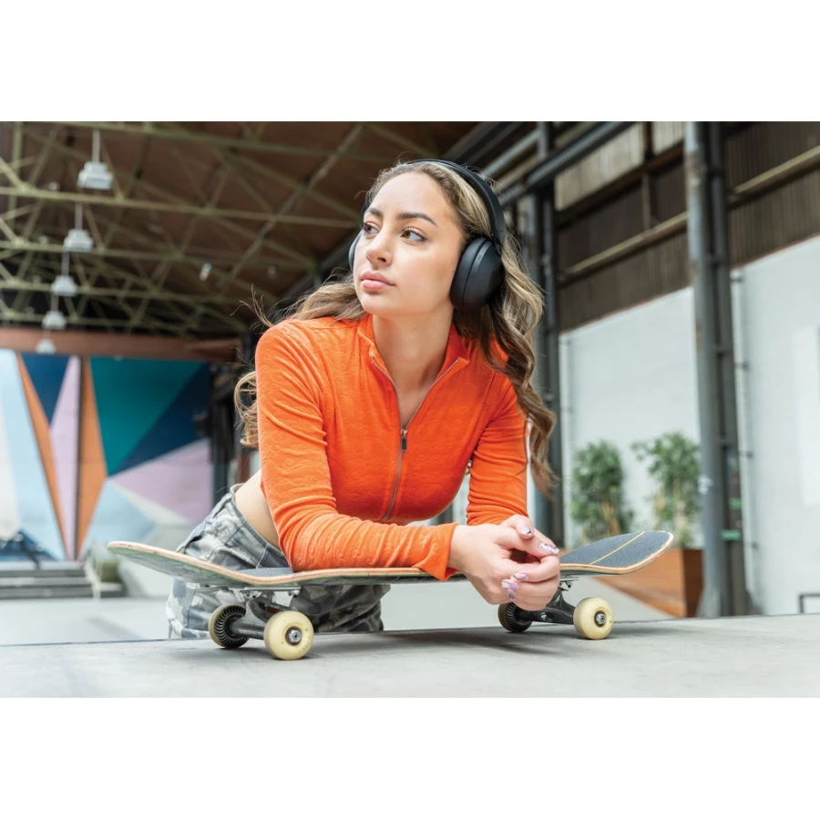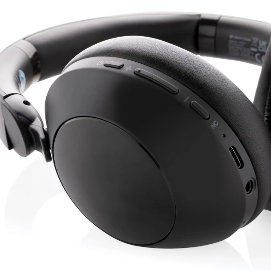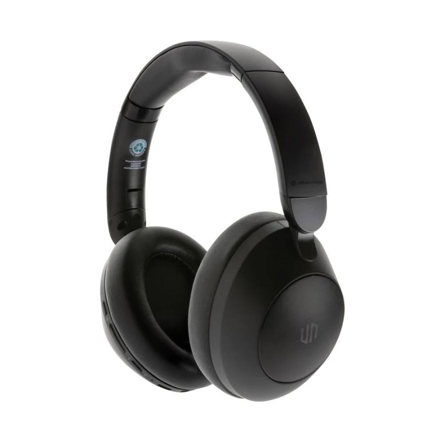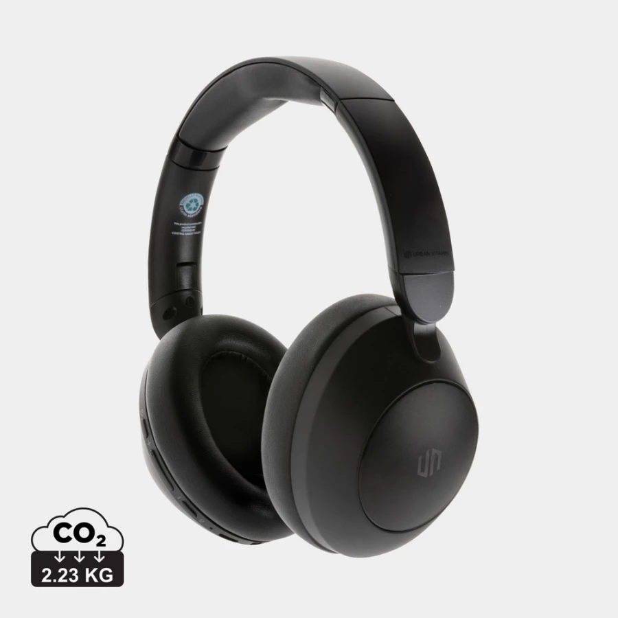 Nauszne słuchawki bezprzewodowe z systemem aktywnej redukcji szumów (ANC), poziom redukcji szumów do 25 dB, składane, wbudowany mikrofon, funkcja odbierania połączeń, komfortowe nauszniki, czas odtwarzania na jednym ładowaniu do 50 godzin, wykonane z ABS z recyklingu z certyfikatem RCS, całkowita zawartość materiału z recyklingu obliczona w oparciu o wagę całkowitą przedmiotu: 58%, nie zawiera PVC, ślad węglowy produktu: 2,23 kg CO2