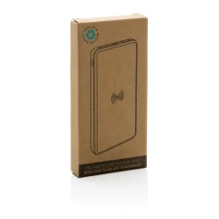 Power bank 8000 mAh, ładowarka bezprzewodowa 5W, działa z telefonami posiadającymi możliwość ładowania indukcyjnego, wykonany z ABS z recyklingu z certyfikatem RCS i bambusa z certyfikatem FSC®, całkowita zawartość materiałów z recyklingu: 20%, obliczona na podstawie masy całkowitej przedmiotu, wbudowany akumulator litowo polimerowy o wysokiej gęstości, wejście USB typu C 5V/2A, wejście micro USB 5V/2A, wyjście 5V/2.4A, w komplecie kabel z TPE z recyklingu z certyfikatem RCS®, ślad węglowy produktu: 3,34 kg CO2