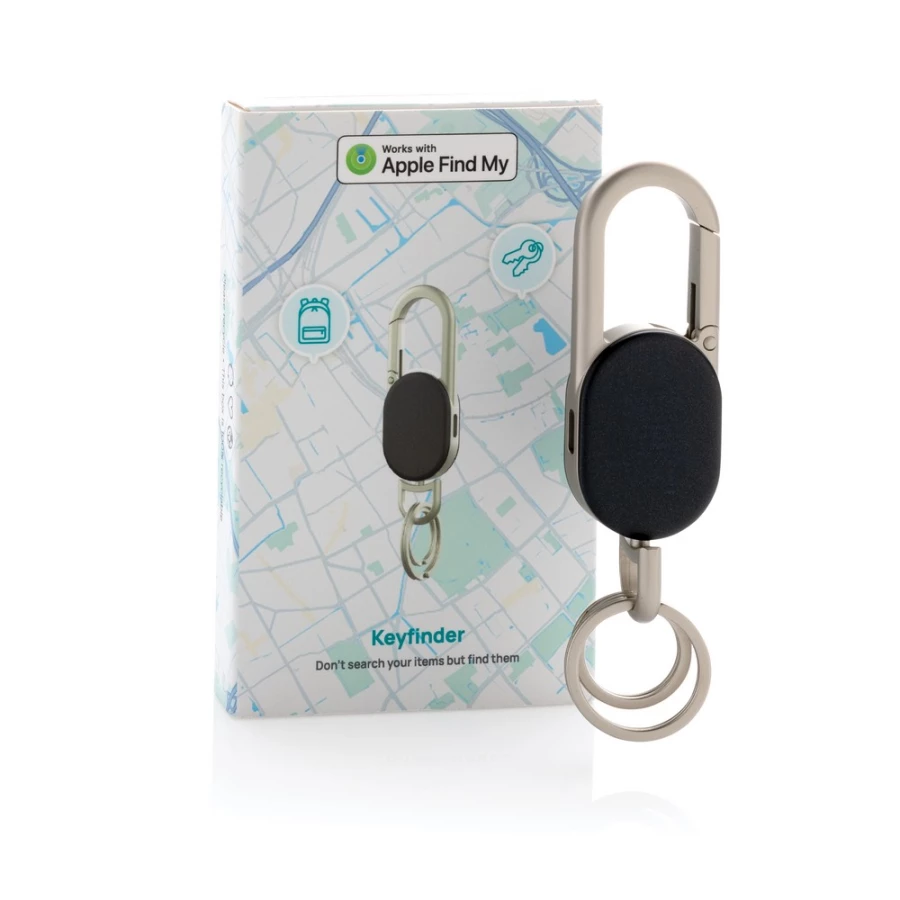 Bezprzewodowy wykrywacz kluczy, lokalizator, brelok, produkt wyposażony w długotrwałą baterię wielokrotnego ładowania, wejście USB-C, zapakowany w opakowanie prezentowe FSC® mix