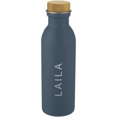 Jednościenny bidon ze stali nierdzewnej 18/8 z bambusową pokrywką. Wolna od BPA, przetestowana i zatwierdzona zgodnie z niemiecką ustawą o bezpieczeństwie żywności (LFGB). Sprawdzona i zatwierdzona pod kątem zawartości ftalanów zgodnie z przepisami REACH. Użyty bambus pochodzi ze zrównoważonych, ekologicznych i społecznie odpowiedzialnych źródeł. Pojemność 650 ml. Zaleca się mycie ręczne. Zapakowany w kartonowe pudełko upominkowe wykonane z materiałów pochodzących z recyklingu.