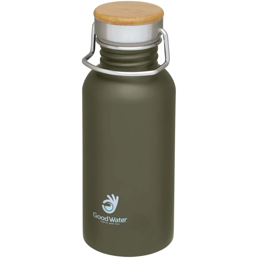 Butelka ze stali nierdzewnej z jednowarstwową ścianką i zakrętką. Zakrętka posiada bambusowy element u góry oraz uchwyt do łatwego przenoszenia. Pojemność 550 ml. Zapakowany w pudełko upominkowe Avenue.
