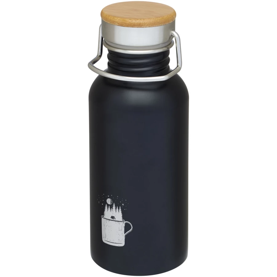Butelka ze stali nierdzewnej z jednowarstwową ścianką i zakrętką. Zakrętka posiada bambusowy element u góry oraz uchwyt do łatwego przenoszenia. Pojemność 550 ml. Zapakowany w pudełko upominkowe Avenue.