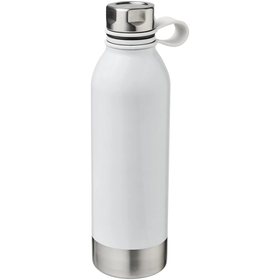 Butelka sportowa Perth 740 ml ze stali nierdzewnej to nie tylko uczta dla oczu na każdym biurku, ale także idealne rozwiązanie podczas spaceru po lesie. Zakręcane wieczko i pokrywka ze stali nierdzewnej z wygodną silikonową pętlą do przenoszenia sprawiają, że butelkę można łatwo przenosić. Dodatkowo, nakrętka nigdy się nie zgubi. Połączenie kolorów białego i srebrnego nadaje butelce stylowy wygląd.