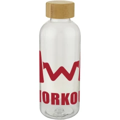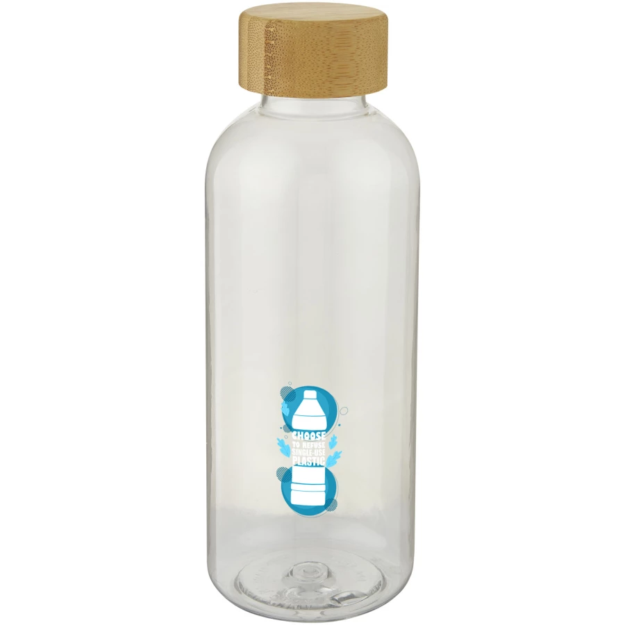 Jednościenny bidon z tworzywa sztucznego pochodzącego w 100% z recyklingu z elegancką bambusową pokrywką. Wolna od BPA, przetestowana i zatwierdzona zgodnie z niemiecką ustawą o bezpieczeństwie żywności (LFGB). Sprawdzona i zatwierdzona pod kątem zawartości ftalanów zgodnie z przepisami REACH. Użyty bambus pochodzi ze zrównoważonych, ekologicznych i społecznie odpowiedzialnych źródeł. Pojemność 650 ml. Zaleca się mycie ręczne. Zapakowany w kartonowe pudełko upominkowe wykonane z materiałów pochodzących z recyklingu.