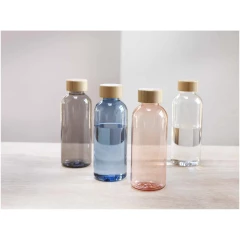 Jednościenny bidon z tworzywa sztucznego pochodzącego w 100% z recyklingu z elegancką bambusową pokrywką. Wolna od BPA, przetestowana i zatwierdzona zgodnie z niemiecką ustawą o bezpieczeństwie żywności (LFGB). Sprawdzona i zatwierdzona pod kątem zawartości ftalanów zgodnie z przepisami REACH. Użyty bambus pochodzi ze zrównoważonych, ekologicznych i społecznie odpowiedzialnych źródeł. Pojemność 650 ml. Zaleca się mycie ręczne. Zapakowany w kartonowe pudełko upominkowe wykonane z materiałów pochodzących z recyklingu.