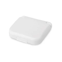 Wygodny i lekki podróżny zestaw do szycia. Składa się z 3 szpilek, 3 igieł, 1 pary pęset, 1 pary nożyczek, 1 nawlekacza, 1 agrafki, 2 guzików, 2 zamknięć na haftki i 6 szpulek nici w kilku kolorach. Dostarczany w twardym etui. 70 x 21 x 65 mm